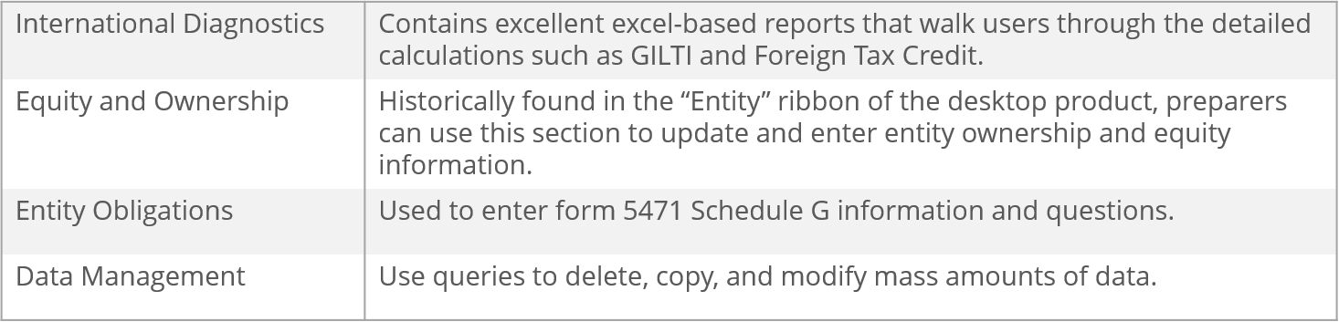 Entities with large international organizational structures would have historically utilized “custom groups” to run consolidated forms. With the release of 2020.2, Corptax will now leverage the ownership and amount sourcing screen to accurately group the entities and baskets when reviewing a form with more than one entity or basket. The most common example is controlled foreign corporations (CFCs) with an ownership in a foreign disregarded entity. This is a time-saving upgrade, as users will no longer need to reconcile international calculations (based on ownership) to tax return forms (historically based on custom groups). The expectation is that this will cut down on system maintenance. Users must understand that keeping the system updated with an accurate ownership structure becomes even more important.